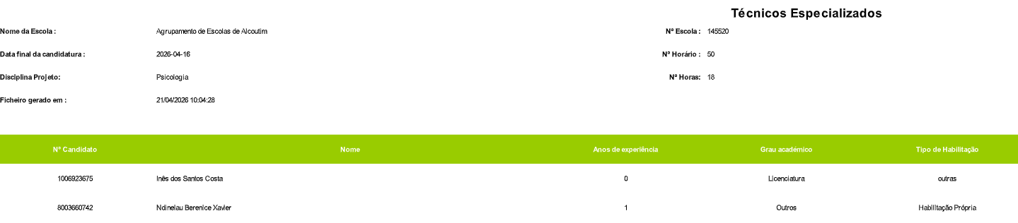 Concurso 20 (Horário n.º 49) – 35 horas – Abertura 9 de abril de 2026