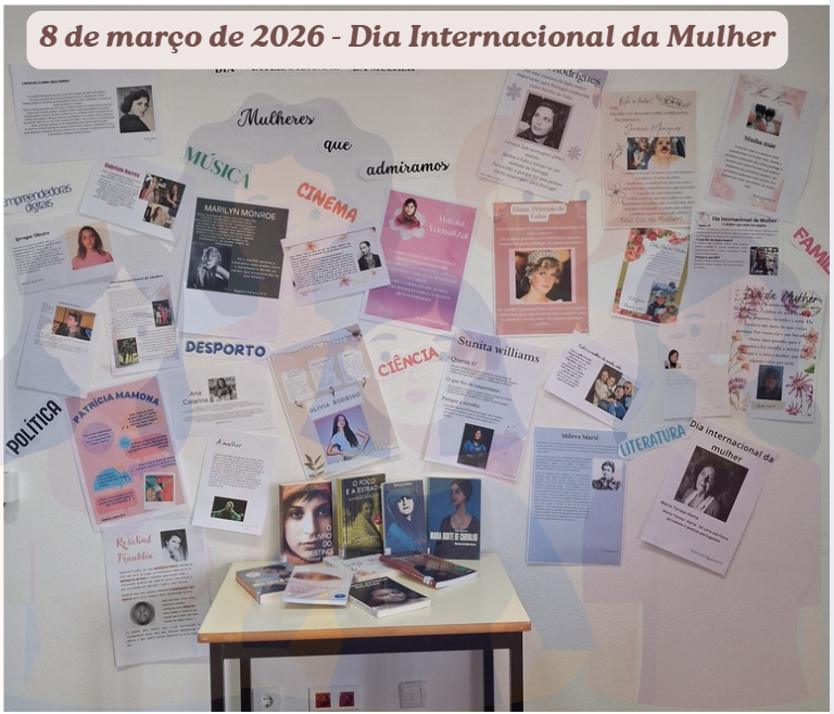 No dia 8 de março, a escola celebrou o Dia Internacional da Mulher com uma atividade significativa , envolvendo os alunos do 2.º e 3.º ciclo. Para assinalar a data, cada aluno foi convidado a refletir sobre uma mulher que admira, que considera marcante, uma figura histórica, uma personalidade atual ou até alguém da sua própria família ou comunidade.