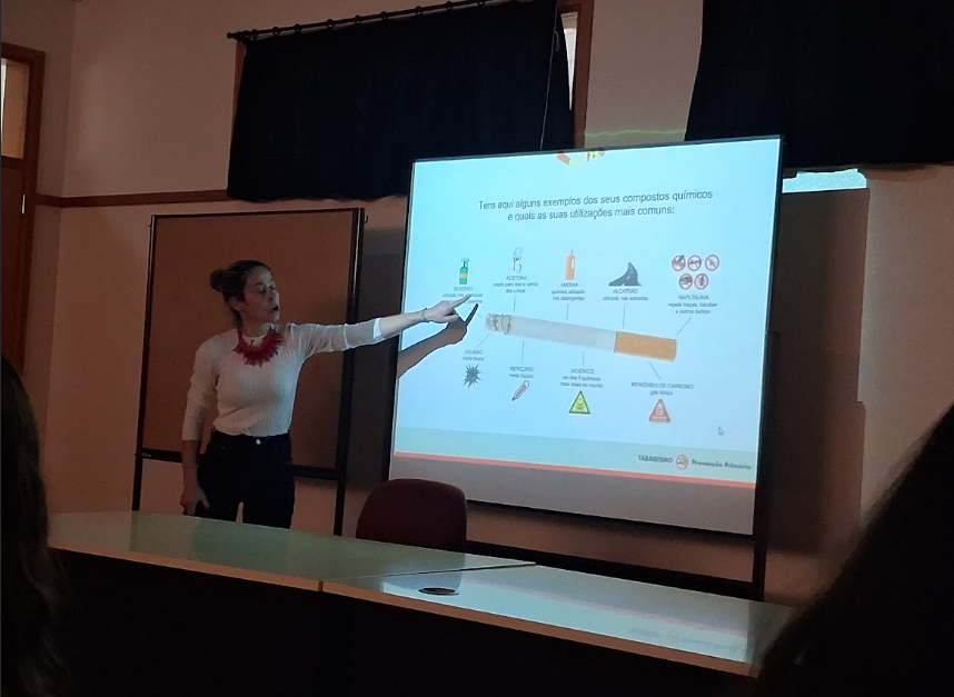 Para assinalar o dia 9 de fevereiro – Dia Mundial do Não Fumador, as enfermeiras da Saúde Escolar, Liliana e Cristina, dinamizaram uma sessão sobre o cancro do pulmão e os malefícios do tabaco, despertando a reflexão dos alunos e sensibilizando-os para escolhas mais saudáveis.